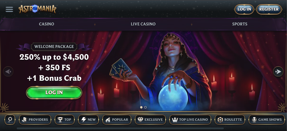 Before we made several Astromania Casino logins and explored the house as members, we paid it a couple of visits as guests. In our opinion, the theme of a carnival fits the place very well, as it closely aligns with the core traits of this hobby. The crystal ball animations and fortune tellers on the banners added to the mystique of the online operator.
